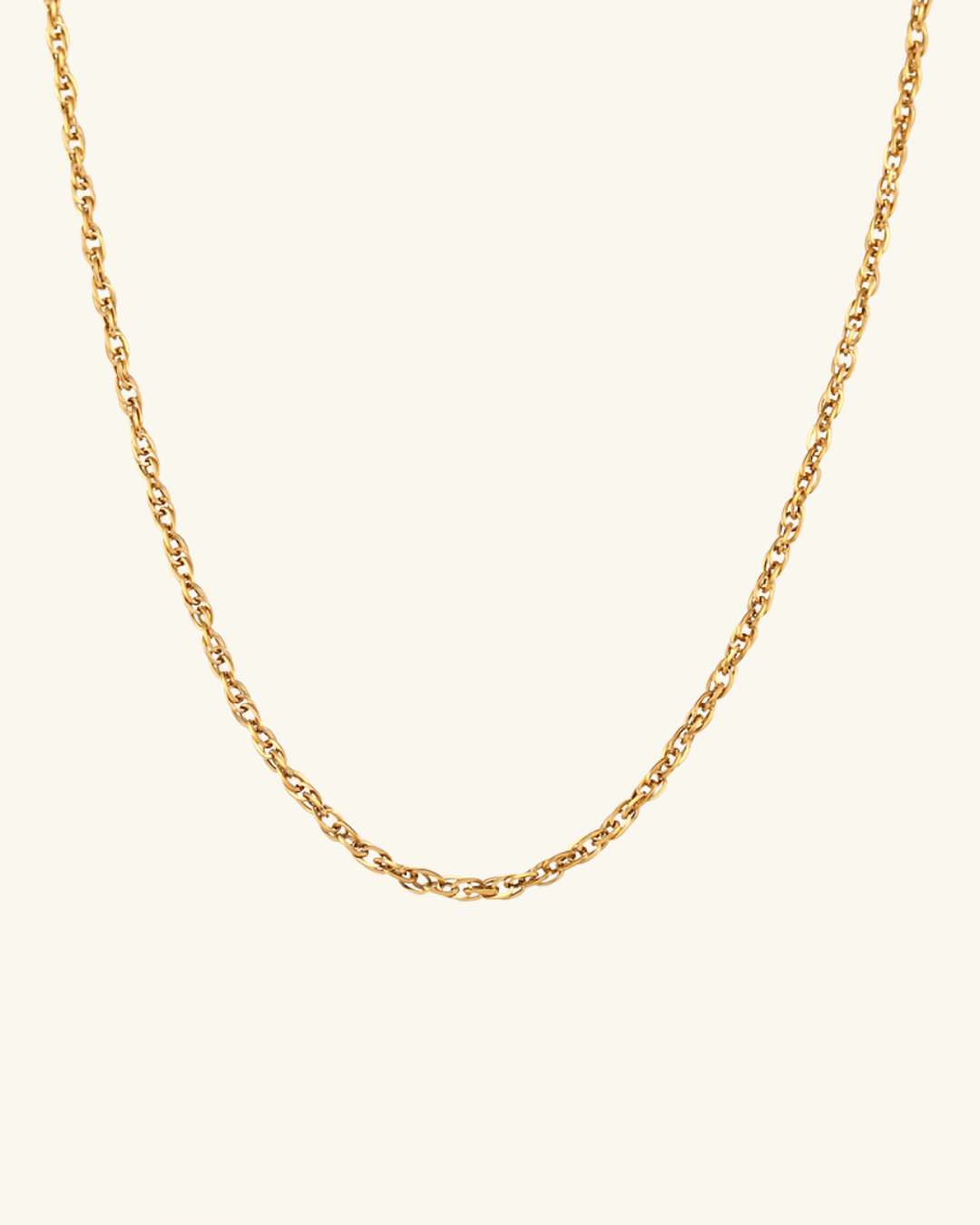 A veces, las piezas más simples son las que cuentan las historias más grandes. El Collar Enredo es como ese misterio encantador que te invita a descubrirlo poco a poco. Con su delicada cadena y su diseño minimalista, parece flotar con una elegancia que nunca pasa desapercibida.