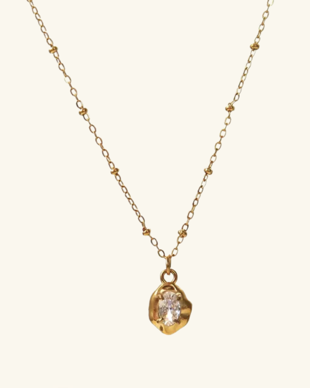 Collar disponible en acabados dorado y plateado, elaborado en acero inoxidable para una mayor durabilidad y estilo. Su diseño delicado y minimalista lo convierte en un accesorio versátil para cualquier ocasión
